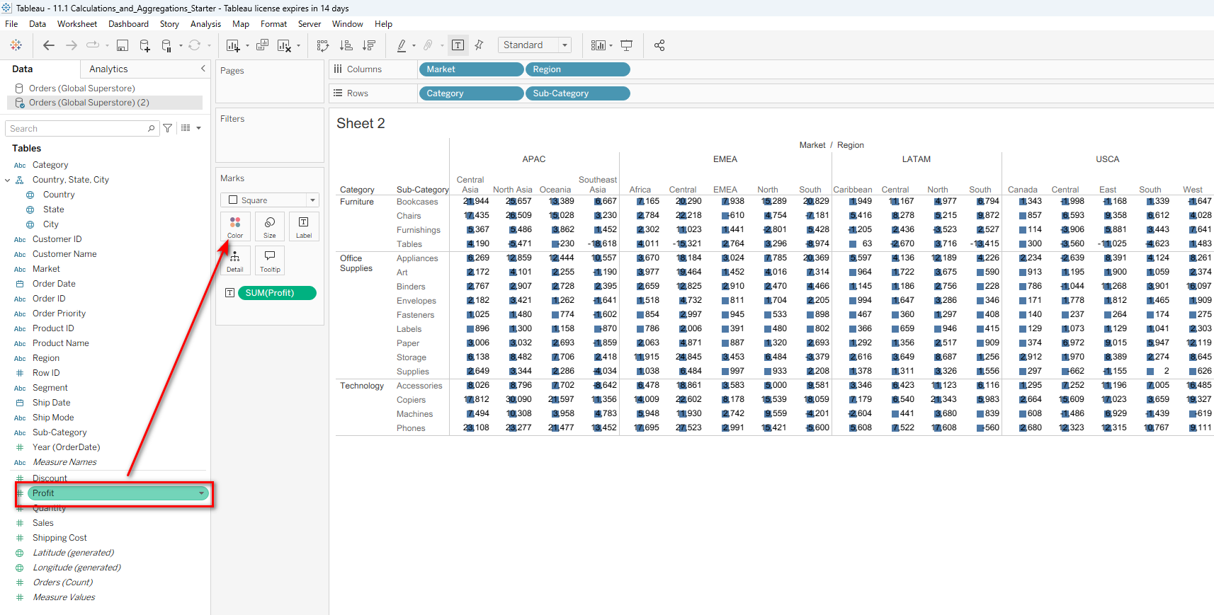 再把利润的字段,再拖到Color里面。