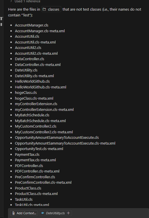 所以我问Copilot,【tell me each file without test class. 】